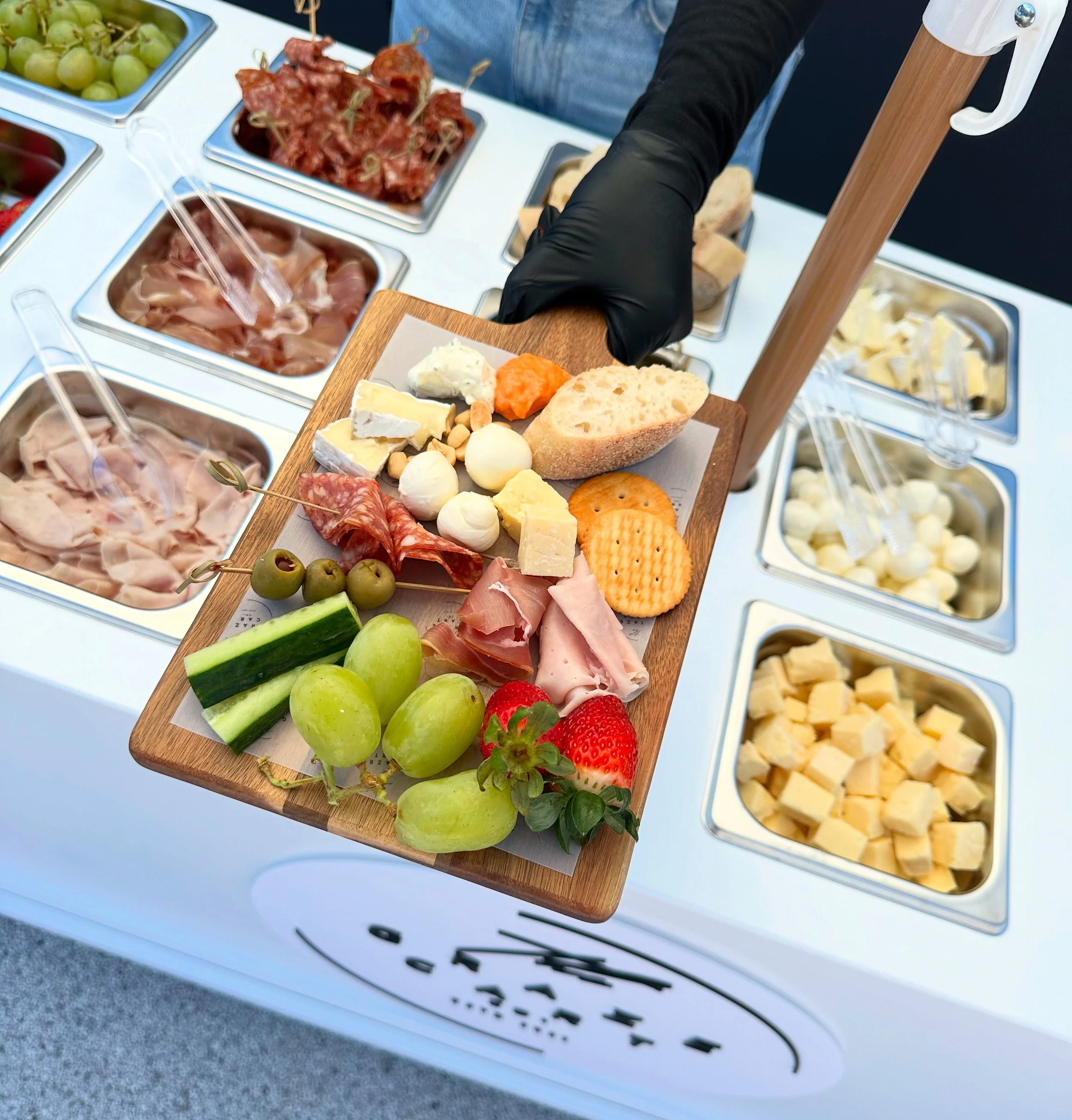 Our signature cart, overflowing with gourmet cheeses, cured meats, fresh fruits, antipasto, crackers, dips, and more – styled to impress and perfect for any celebration. Every guest gets served on their own individual board!