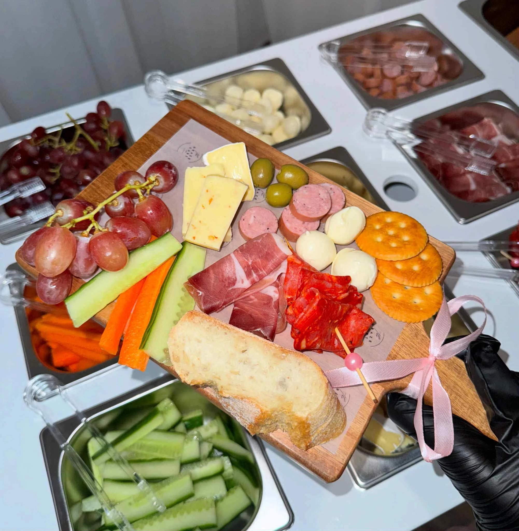 Our signature graze cart includes; 1.5-2 hours of food service, 2 staff members, 12 food options served on wooden boards or boats, set up and packdown